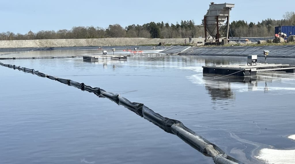 Tillsammans med vår samarbetspartner Eden Aquatech fick vi förtroendet att arbeta med Ragn-Sells för att optimera reningsprocessen i deras lakvattendamm. Vi utvecklade och tillverkade skräddarsydda flytväggar, där både utformning och väv anpassades efter dammens specifika vattenkvalitet. Efter produktionen ansvarade vi för installationen på plats, parallellt med att Eden Aquatech installerade sina luftare.I kombination skapar flytväggarna/skärmväggarna och Eden Aquatechs luftare ett optimerat flöde och en effektivare reningsprocess.